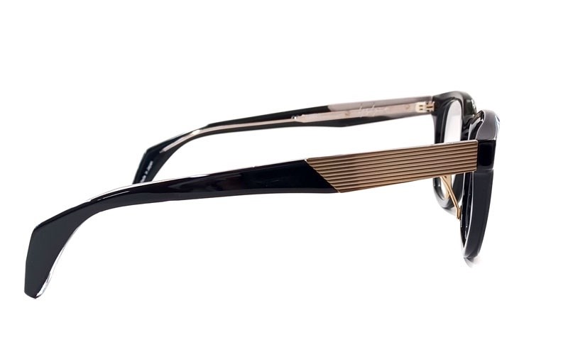 本格派ウェリントンのセルフレーム。サイドには左右別のメタルテクスチャーを配置。ハンドライティングのロゴは型押しした凸に。右側には大胆なシグネチャー・ストライプで、唯一無二の存在感。